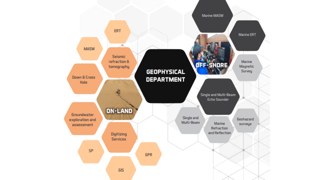Gulf Survey Geophysical Department Provides wide range of geophysical applications and services to clients, who seek for noninvasive, surface-based ground investigations, which could identify subsurface distribution of geologic material, water resources, and contaminated zones, allocating potential natural hazards such as faults, karstic, cavity, major fractures, and failure features.